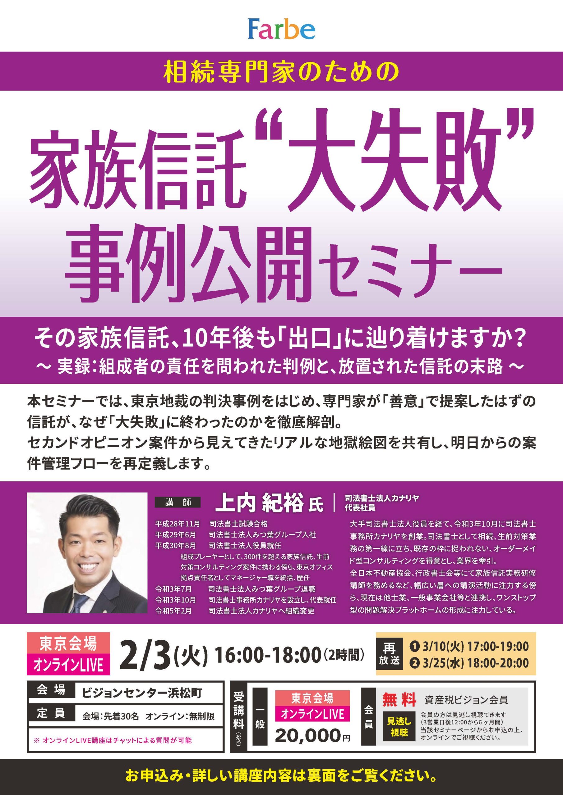 本セミナーでは、東京地裁の判決事例をはじめ、専門家が「善意」で提案したはずの信託が、なぜ「大失敗」に終わったのかを徹底解剖。セカンドオピニオン案件から見えてきたリアルな地獄絵図を共有し、明日からの案件管理フローを再定義します。
